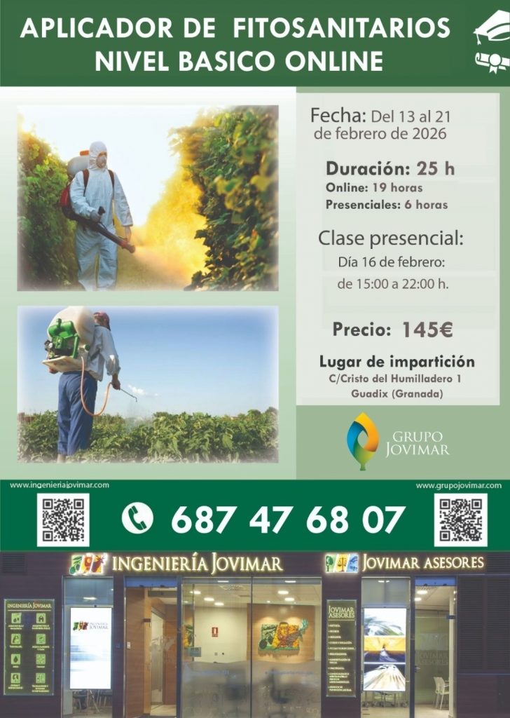 En Grupo Jovimar impartiremos una nueva edición del curso «Aplicador de productos Fitosanitarios nivel básico ONLINE» en febrero.