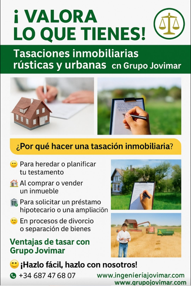 Tasaciones inmobiliarias rústicas y urbanas con Grupo Jovimar